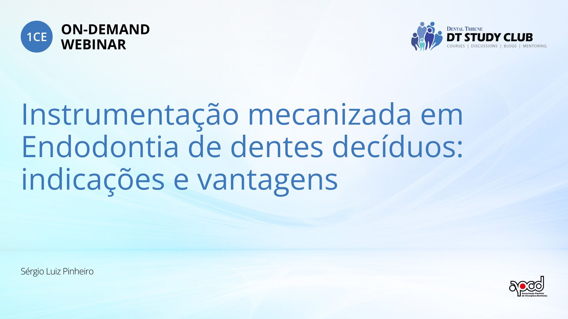 O curso visa apresentar alternativas de praparos mecanizados para dentes decíduos com o objetivo de redução do tempo operatório gasto para o tratamento endodôntico em crianças. Enfoque será dado para instrumentação reciprocante com o uso único de uma lima para instrumentação do canal.